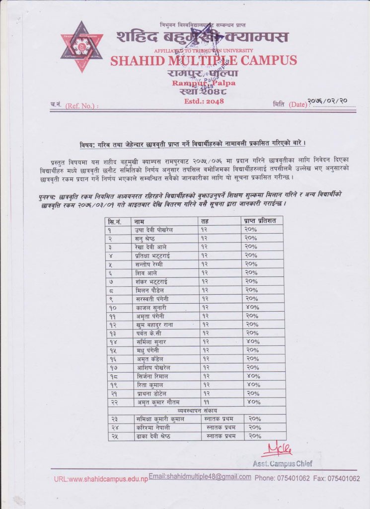 03 Jun Scholarship Disbursement for Academic Year 2075/076 In: Notice and News By: Shahid Campus 0 Comment 696 Views Share this post: