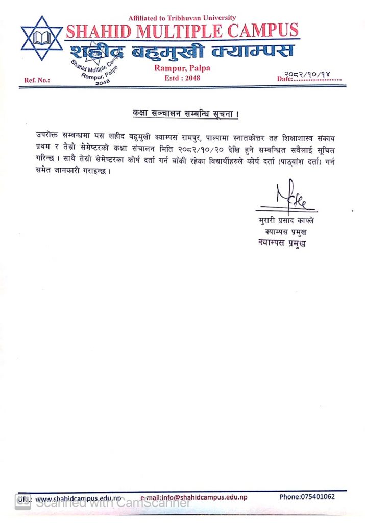 28 Jan MBS तथा M. Ed. first semester को कक्षा सञ्चालन सम्बन्धि सूचना In: Notice and News By: Shahid Campus 0 Comment 10 Views Share this post: