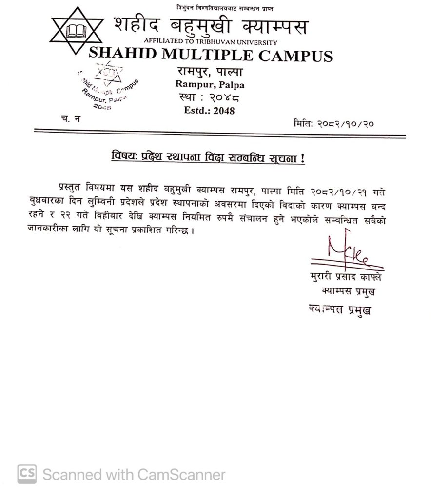 03 Feb प्रदेश स्थापना दिवस सम्वन्धि सूचना In: Notice and News By: Shahid Campus 0 Comment 2 Views Share this post:
